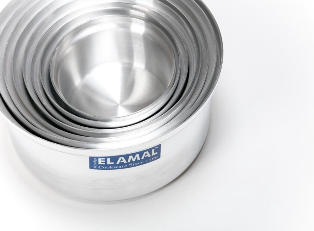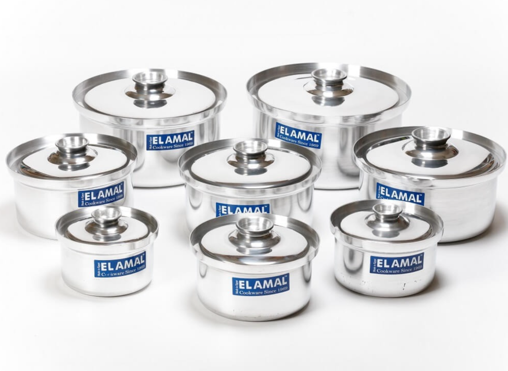 يتميز طقم قدور ألمنيوم الامل 8 قطع بـ تصميم تقليدي يسهل التنظيف، تاتي القدورالمصنعة من مادة ألومنيوم بمقاسات مختلفة، 16/18/20/22/24/26/28/30 سم ، ذات صناعة مصرية.